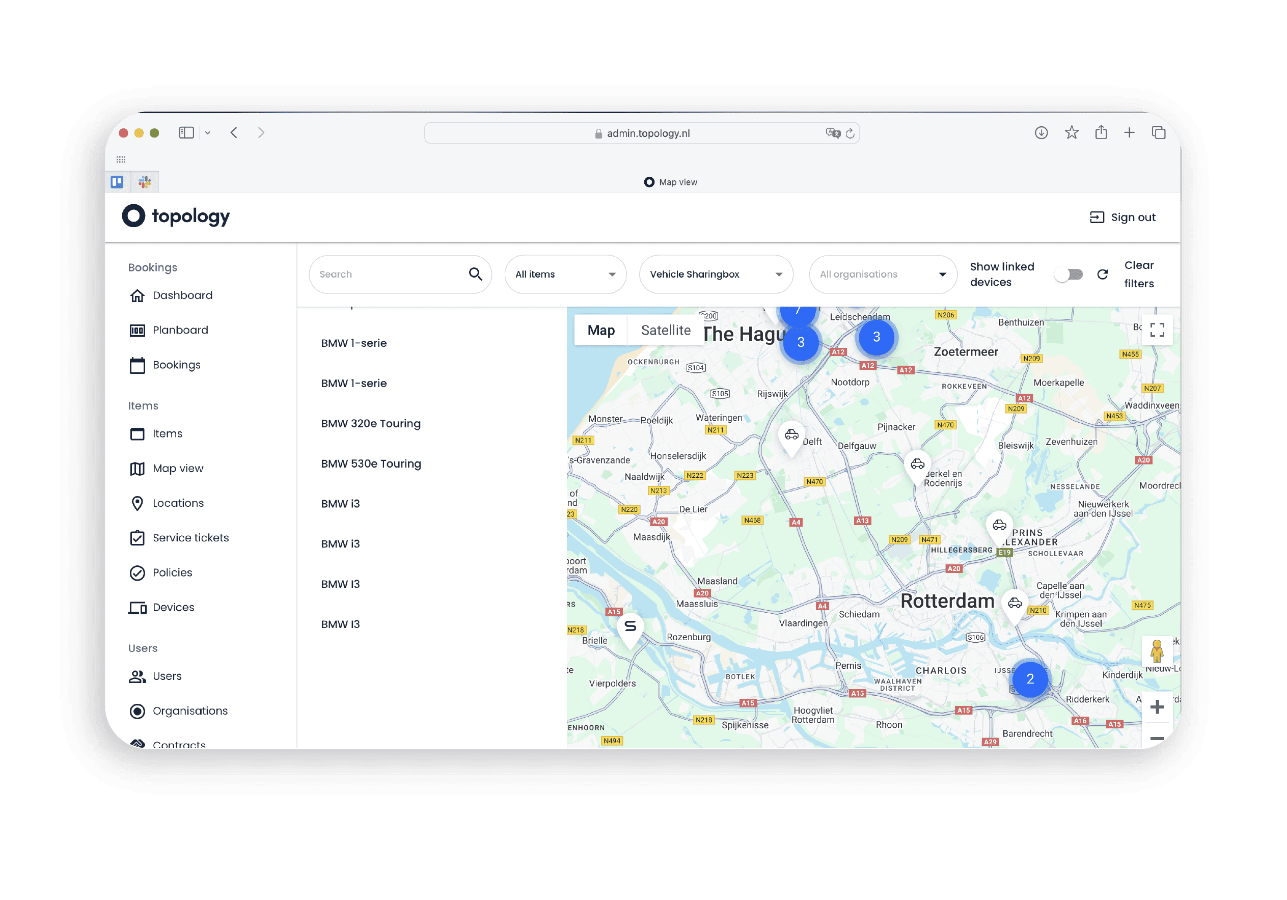 Alle huuractiviteiten op uw bedrijfsmiddelen worden bijgehouden in de Topology beheeromgeving. Zowel voor interne verhuur als externe verhuur. Is uw aanbod gekoppeld aan onze digitale sloten, dan kunt u op afstand inzicht krijgen in het gebruik, toegang verlenen of bijvoorbeeld voertuig data ophalen. Onze autodeelsystemen zijn voorzien van ritregistratie, waardoor automatisch ritten worden gekoppeld aan verhuren.